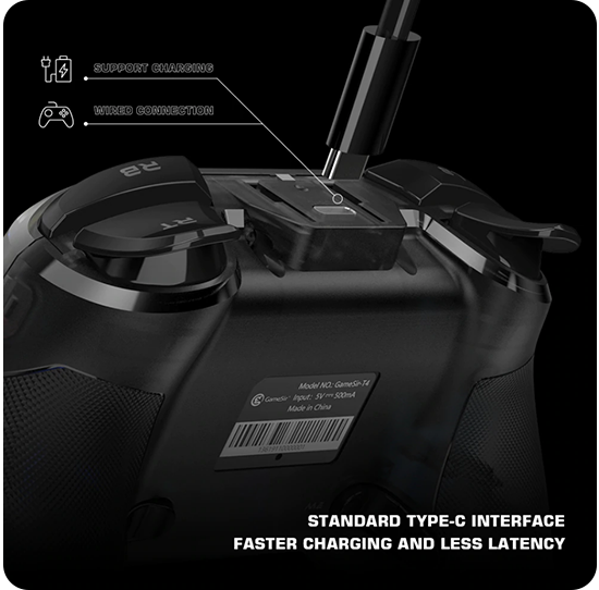 Як живлення використовується вбудований літій-іонний акумулятор ємністю 600 мА·год. Він здатний забезпечувати автономну роботу геймпада упродовж тривалого часу. Для заряджання на корпусі пристрою передбачений спеціальний роз'єм USB Type-C, тому акумулятор легко заряджається за допомогою звичайного мережевого адаптера для смартфона або ноутбука.| Загальний | Бренд: GameSir |